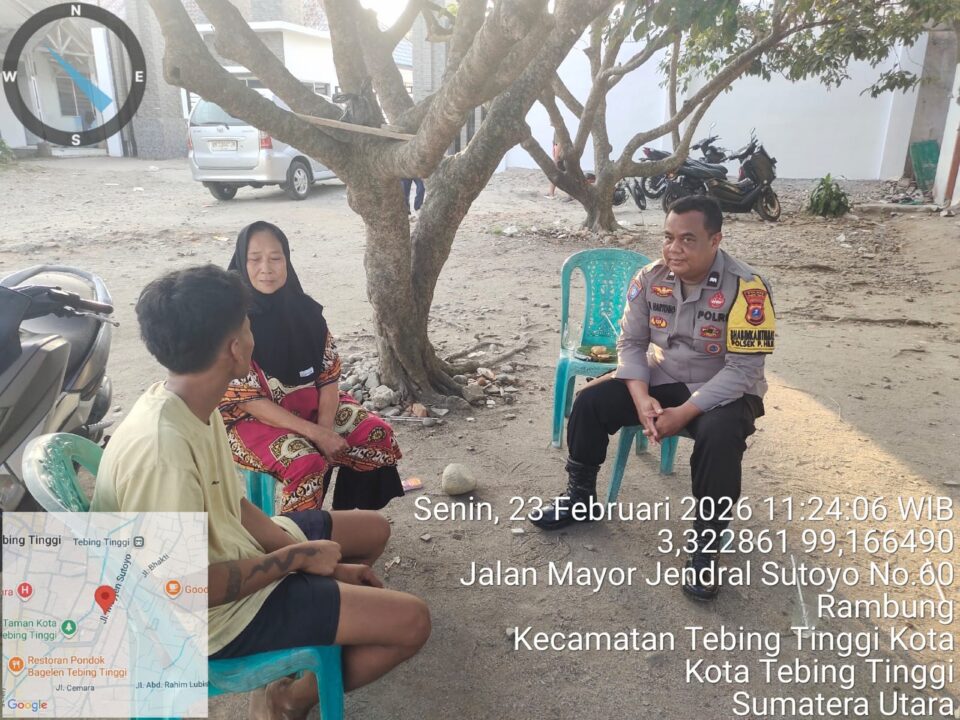 ASARPUA.com – Tebing Tinggi – Dalam rangka menjaga dan memelihara situasi keamanan dan ketertiban masyarakat (kamtibmas) agar tetap kondusif, Polres Tebingtinggi melalui Bhabinkamtibmas Polsek Padanghilir Aipda Mhd. Hartono melaksanakan kegiatan sambang dan mengimbau warga binaannya. Kegiatan tersebut dilaksanakan pada hari Senin (23/02/2026), bertempat di Jalan Sutoyo Lk III Kelurahan Rambung, Kecamatan Tebingtinggi Kota, Kota Tebingtinggi – Sumut.