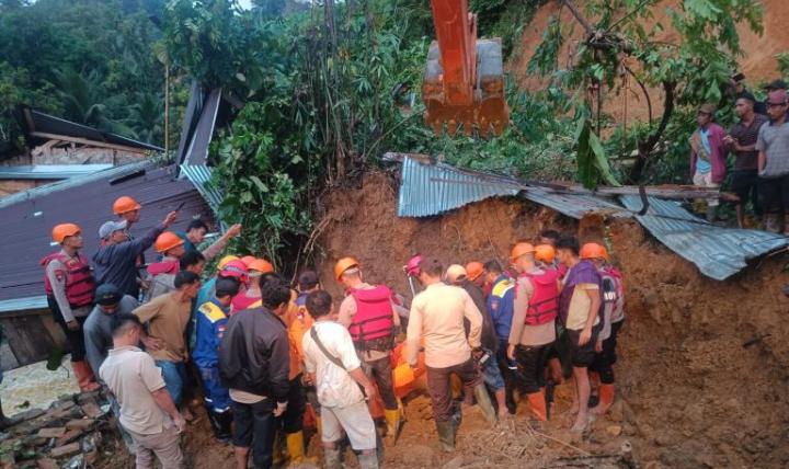 Setibanya di lokasi, petugas mendapati sejumlah rumah warga di Dusun 3 tertimbun material longsor dan segera melakukan pencarian korban secara manual.