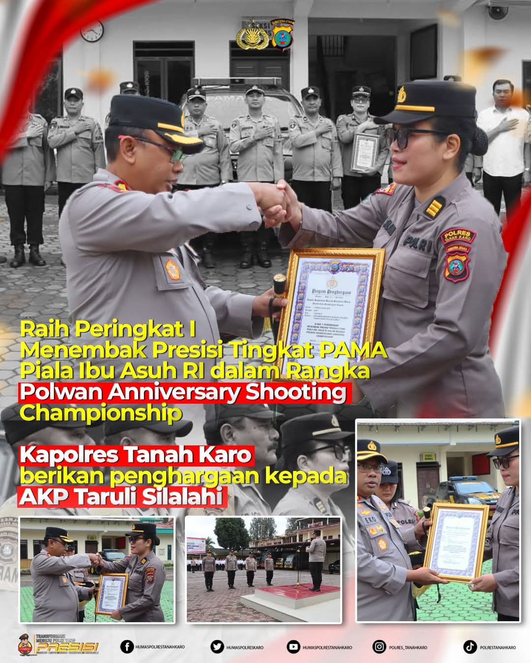 ASARPUA.com – Jakarta – Prestasi membanggakan kembali diraih oleh personel Polres Tanah Karo. AKP Taruli Silalahi, yang menjabat sebagai Kasubbagbinops Bagops Polres Tanah Karo Polda Sumut (Poldasu), berhasil meraih Juara 1 Perorangan Menembak Presisi Tingkat Pama pada ajang Piala Ibu Asuh RI, dalam rangka Polwan Anniversary Shooting Championship Tahun 2025.