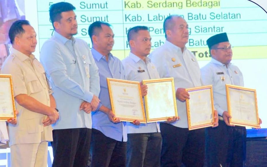 Penghargaan tersebut diserahkan Mendagri Tito Karnavian dan diterima dengan baik oleh Wakil Bupati (Wabup) Labuhanbatu, H Jamri ST, di sela kegiatan Musyawarah Perencanaan Pembangunan (Musrenbang) RKPD Provinsi Sumatera Utara Tahun 2027 yang digelar di Hotel Santika Premiere Dyandra, Medan, Rabu (22/04/2026).