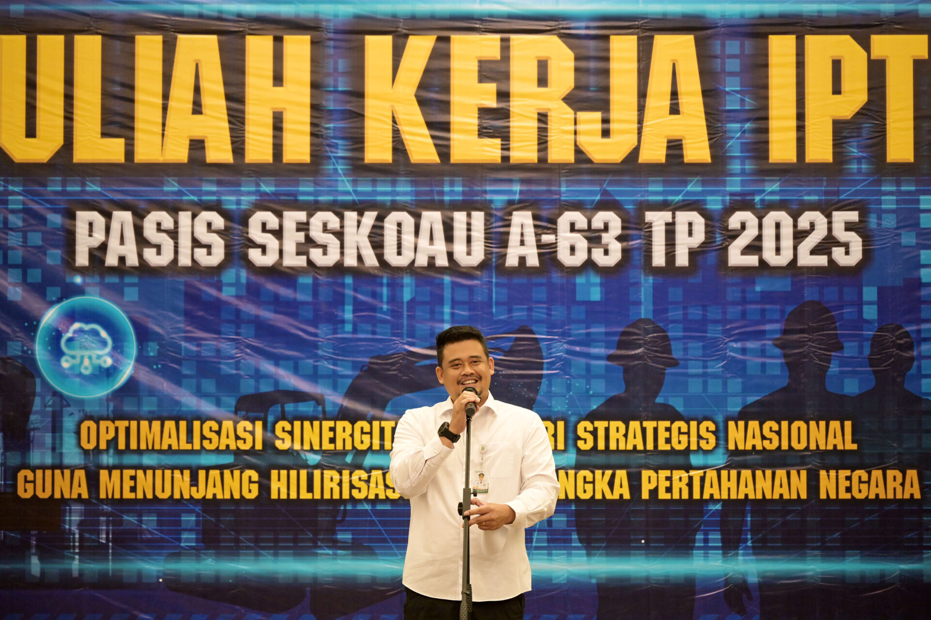 “Kita sedang mempersiapkan Indonesia Emas 2045, dan hilirisasi industri menjadi hal yang sangat penting, beruntung kami dipilih untuk Kuliah Kerja Praktek Sesko AU, kami harap Sumut berperan besar di industri nasional, terutama di bidang pertahanan,” kata Bobby Nasution, di acara pembukaan Kuliah Kerja Iptek Pasis Sesko AU A-63 di Hotel Santika Premiere Dyandra Hotel & Convention, Jalan Kapten Maulana Lubis, Medan, Rabu (27/08/2025).