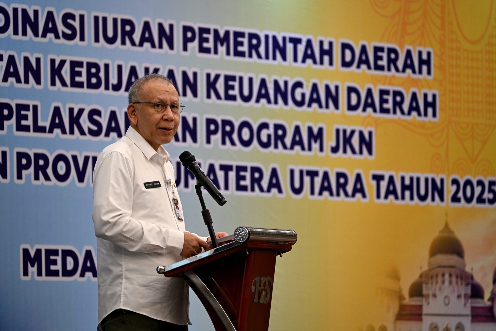 “Melalui cost yang proporsional dan ini sudah disepakati oleh semua kepala daerah, maka kita akan mencapai target yang telah ditentukan, bila semua berjalan sesuai yang kita harapkan (paling cepat) kemungkinan bulan Agustus kita telah mencapai UHC 98,6%,” kata Penjabat Sekretaris Daerah Provinsi (Sekdaprovsu) Armand Effendy Pohan di Acara Rakor Iuran Pemda dan Penguatan Kebijakan Keuangan Daerah dalam Pelaksanaan Program JKN untuk Wilayah Sumut dan Aceh di Hotel Santika Premiere Dyandra Medan, Jalan Kapten Maulana Lubis, Medan, Selasa (03/06/2025).