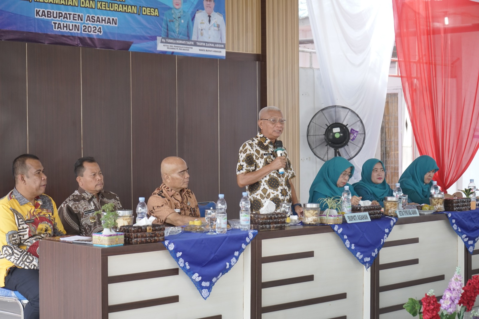 Bupati H Surya, BSc membuka Rapat Koordinasi Teknis (Rakornis) Tim Penggerak Pemberdayaan Kesejahteraan Keluarga (TP PKK) Kabupaten Asahan, bulan Juni 2024 di Lapangan Kantor Kecamatan Air Batu, Kamis (20/06/2024). (Foto. Asarpua.com/dikas)