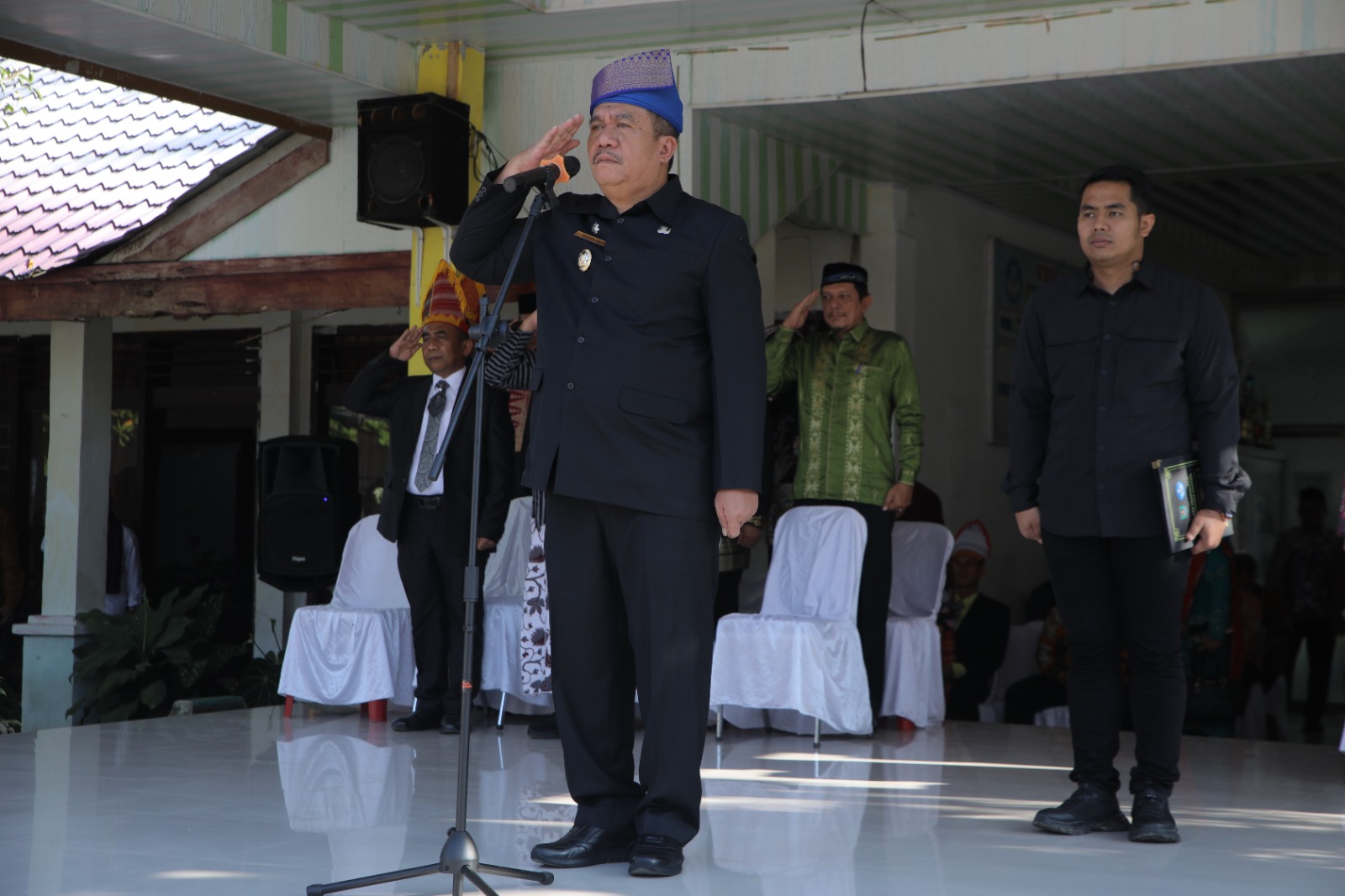 ASARPUA.com – Asahan – Bupati Asahan Taufik Zainal Abidin Siregar mengenakan Tanjak Melayu saat memimpin upacara peringatan Hari Pendidikan Nasional (Hardiknas) 2025, di halaman SMP Negeri 2 Kisaran, Jumat (02/05/2025).