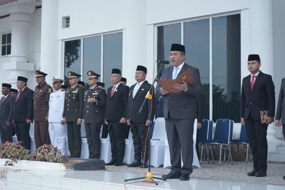 Bupati Asahan Taufik Zainal Abidin memimpin upacara peringatan Hari Lahir Pancasila yang digelar di halaman kantor Bupati, Minggu (01/06/2025). (Foto: Dok/Dikas)