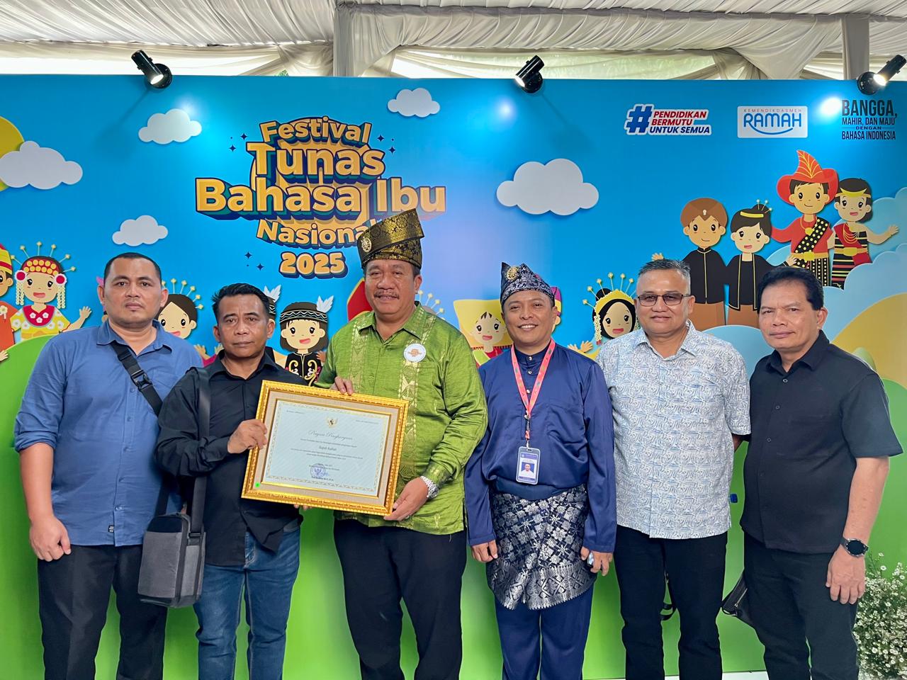 Penghargaan tersebut diserahkan oleh Menteri Pendidikan Dasar dan Menengah Prof Abdul Mu’ti, dalam acara Festival Tunas Bahasa Ibu Nasional Tahun 2025, berlangsung di Gedung Merah Putih, Bojongsari Depok provinsi Jawa Barat, Senin (26/05/2025).