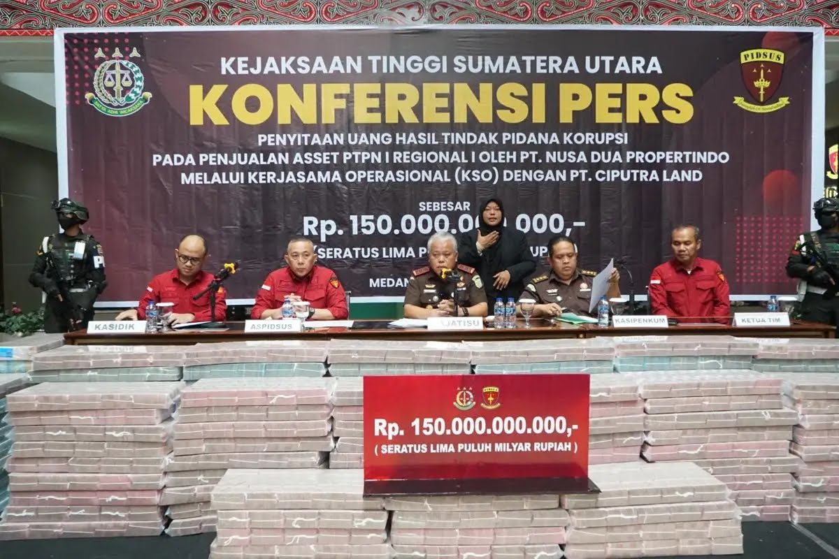 ASARPUA.com – Medan – Sebagai upaya penyelamatan dan pemulihan keuangan negara dari penanganan tindak pidana korupsi Perkara Penjualan Aset PTPN I Regional I oleh PT.Nusa Dua Propertindo melalui Kerjasama Operasional (KSO) dengan PT.Ciputra Land, Tim Penyidik Bidang Pidana Khusus Kejaksaan Tinggi Sumatera Utara saat ini telah menerima pengembalian kerugian keuangan negara dari PT Deli Megapolitan Kawasan Residensial (DMKR) dengan nilai total Rp.150.000.000.000,- (seratus limapuluh miliar rupiah) untuk selanjutnya dilakukan penyitaan oleh penyidik.