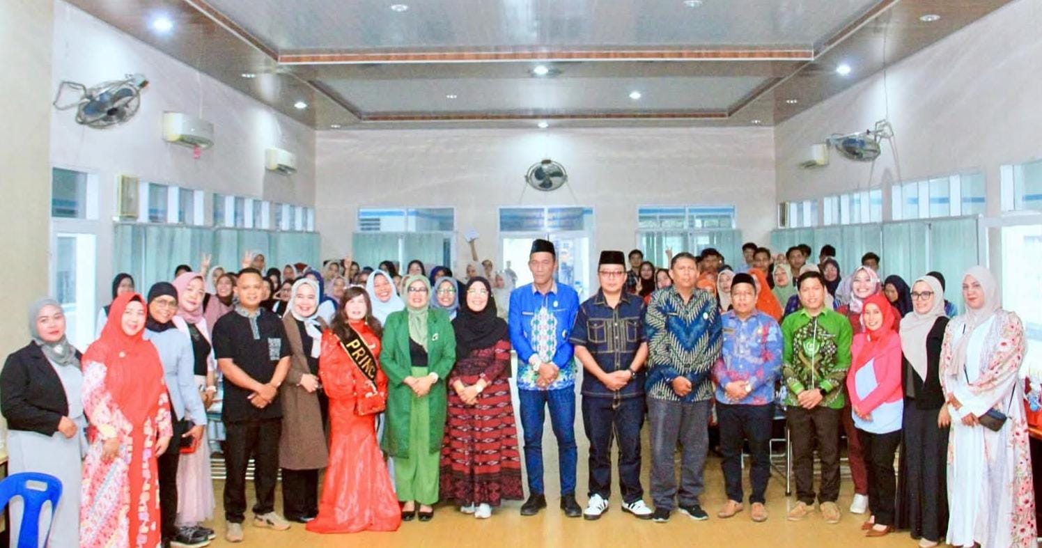 Staf Ahli Bupati mewakili Bupati Labuhanbatu, M Rizaldi, Asisten II Drs Ikramsyah Putra Nasution, Ketua SBM Erni Zulita, Johan Siahaan dan narasumber Dr Junita foto bersama peserta pelatihan public speaking yang digelar Sahabat Bunda Maya, di Gedung PKK, Jalan WR Supratman Rantauprapat, Kamis (20/11/2025). (Foto: Asarpua.com/Dikla)