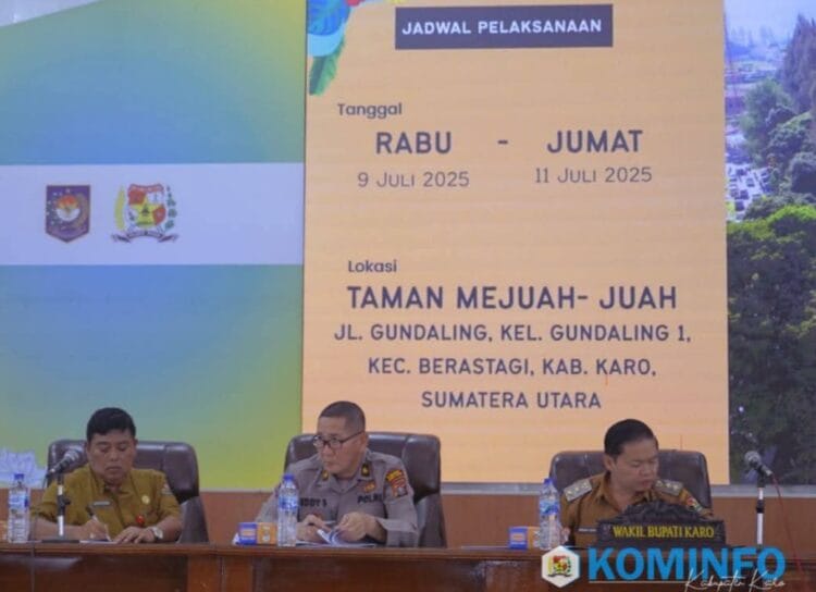 ASARPUA.com – Karo – Pemerintah Kabupaten (Pemkab) Karo menggelar Rapat Persiapan Festival Bunga Buah Tahun 2025 yang dihadiri langsung oleh Wakil Bupati Karo Komando Tarigan, SP beserta jajaran Forkopimda di aula Kantor Bupati Karo Jalan Letjen Jamin Ginting Kabanjahe, Selasa (03/06/2025).