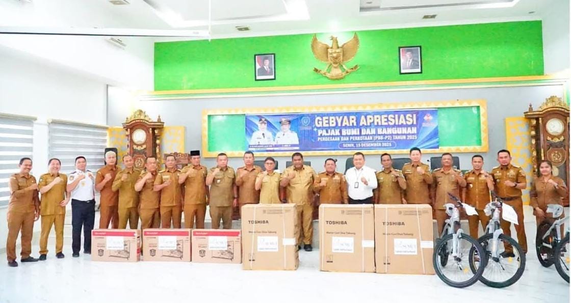 ASARPUA.com – Labuhanbatu – Pemerintah Kabupaten (Pemkab) Labuhanbatu menggelar Gebyar Apresiasi Pajak Bumi dan Bangunan (PBB) sebagai bentuk penghargaan kepada aparatur wilayah yang dinilai sukses meningkatkan kepatuhan wajib pajak dan realisasi penerimaan daerah. Acara pemberian apresiasi itu berlangsung di Ruang Data dan Karya Kantor Bupati, Jalan Sisingamangaraja Rantauprapat, Senin (15/12/2025).