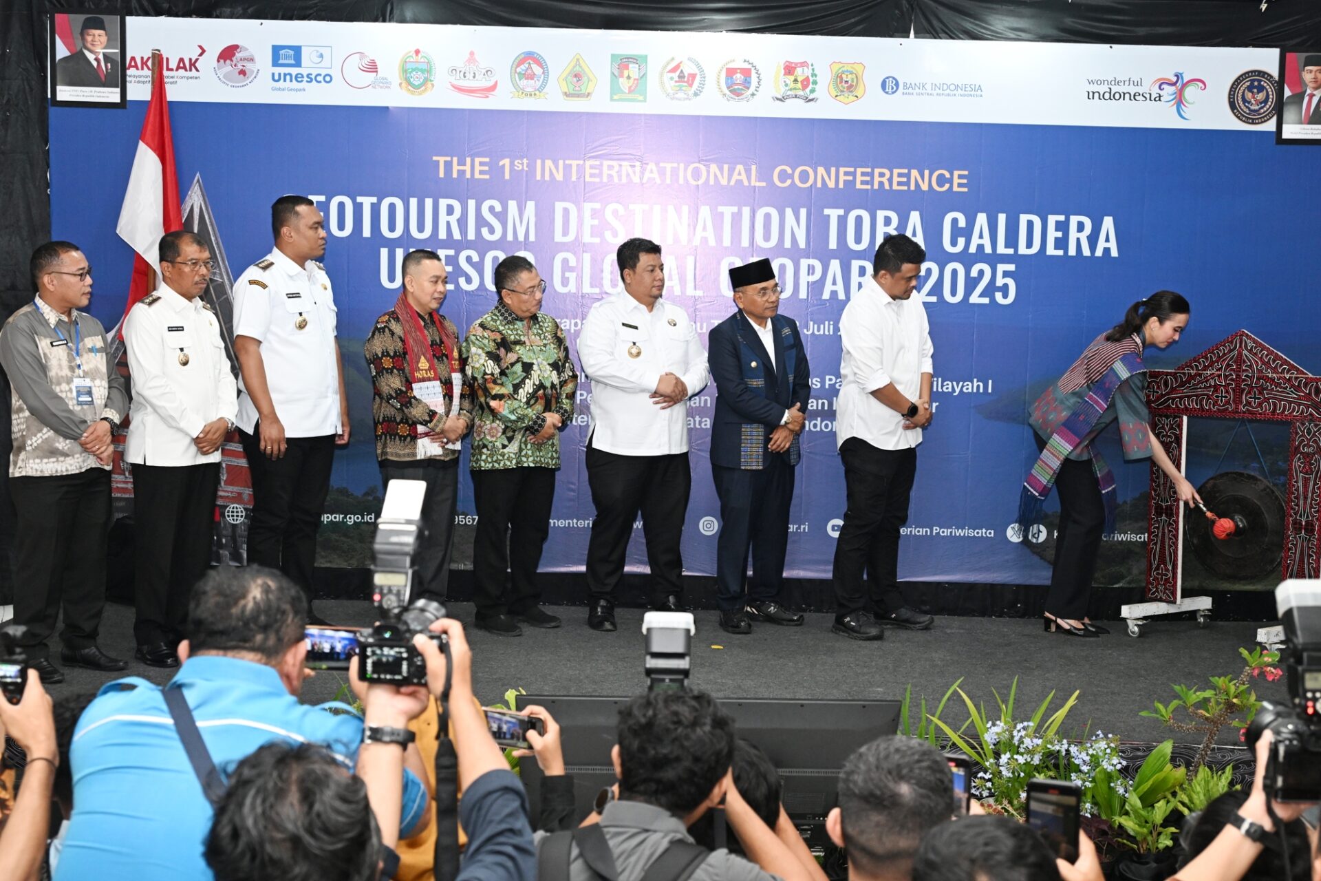 ASARPUA.com – Danau Toba – Menteri Pariwisata (Menpar) Republik Indonesia (RI) Widiyanti Putri Wardhana didampingi Gubernur Sumatera Utara (Gubsu) Bobby Nasution, membuka secara resmi Konferensi Pertama Destinasi Geowisata Kaldera Toba Unesco Global Geopark 2025. Kegiatan tersebut berlangsung di Hotel Khas Parapat, Danau Toba, Kabupaten Simalungun, Selasa (08/07/2025).