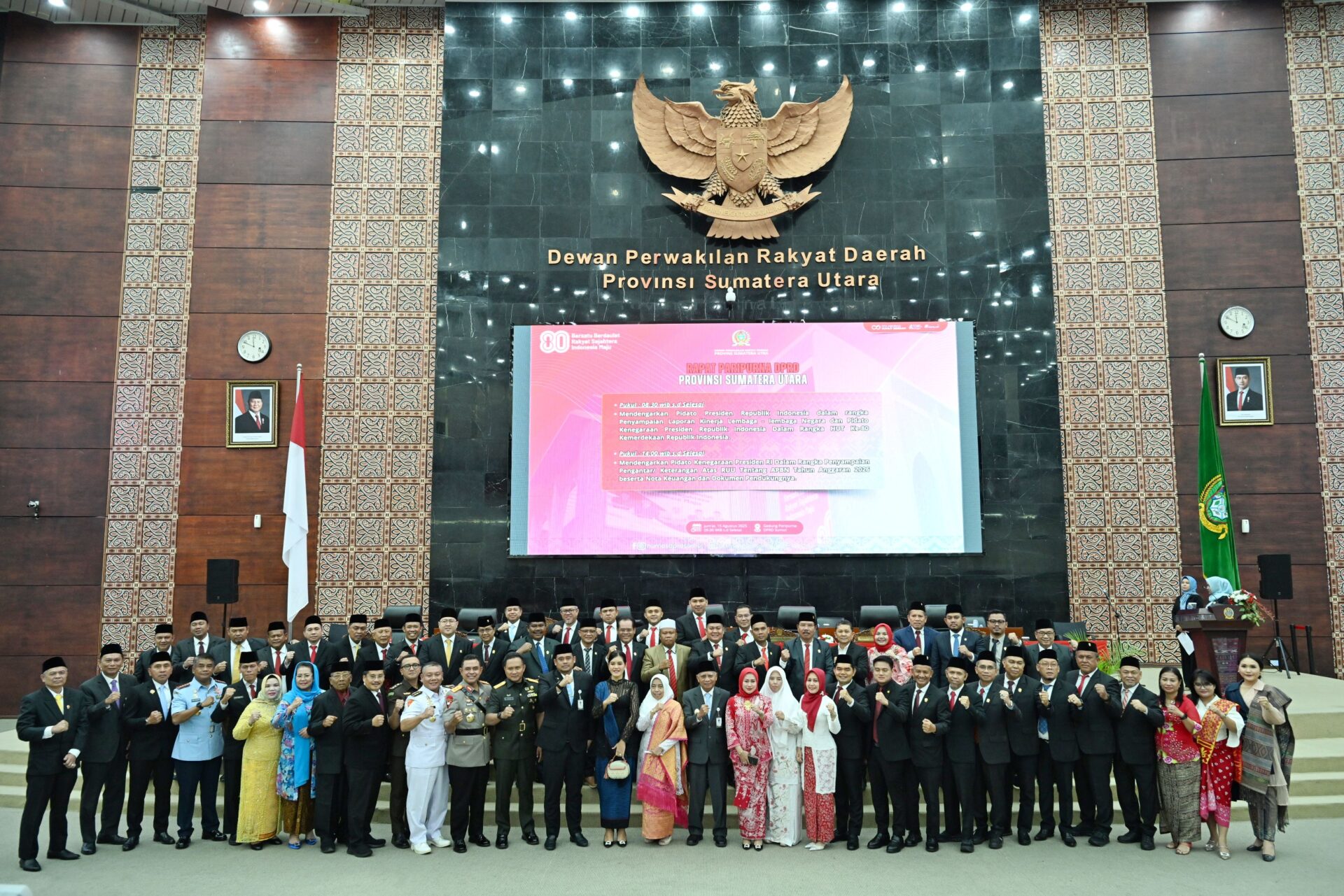 ASARPUA.com – Medan – Gubernur Sumatera Utara (Gubsu) Bobby Nasution bersama Wakil Gubernur (Wagubsu) Surya, mendengarkan pidato kenegaraan Presiden RI Prabowo Subianto, dalam rangka Hari Ulang Tahun (HUT) ke-80 Kemerdekaan Republik Indonesia. Acara yang berlangsung secara virtual itu dilaksanakan di Gedung Paripurna DPRD Sumut, Jalan Imam Bonjol Medan, Jumat (15/08/2025).