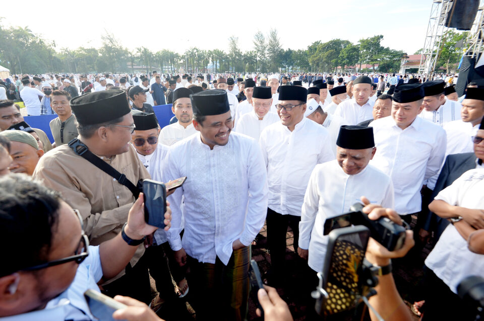 ASARPUA.com – Deliserdang – Gubernur Sumatera Utara (Gubsu) Bobby Nasution dan Wakil Gubernur Sumatera Utara (Wagubsu) Surya melaksanakan Salat Iduladha 1446 H, bersama ribuan masyarakat Deliserdang dan sekitarnya, di Alun-alun Pemkab Deliserdang, Lubukpakam, Jumat (06/06/2025). Kedatangan GGusu beserta rombongan, disambut Bupati Deliserdang Asri Ludin Tambunan dan Wakil Bupati Lomlom Suwondo, serta masyarakat.