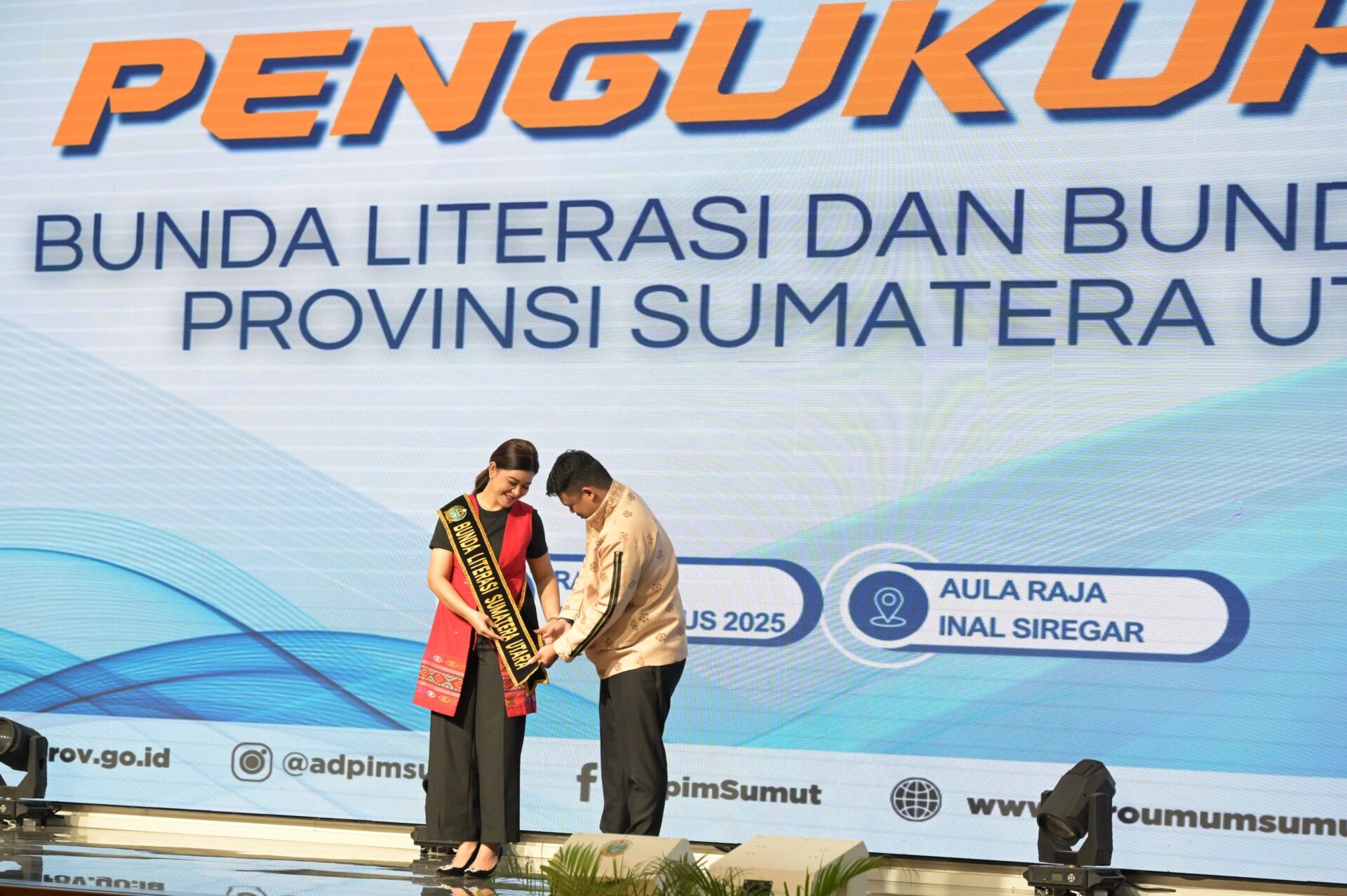 ASARPUA.com – Medan – Gubernur Sumatera Utara (Gubsu) Bobby Nasution mengukuhkan Kahiyang Ayu sebagai Bunda Literasi Sumatera Utara (Sumut) dan Bunda Pendidikan Anak Usia Dini (PAUD) Sumut. Kegiatan tersebut berlangsung di Aula Raja Inal Siregar, Kantor Gubsu Jalan Diponegoro 30 Medan, Rabu (13/08/2025).