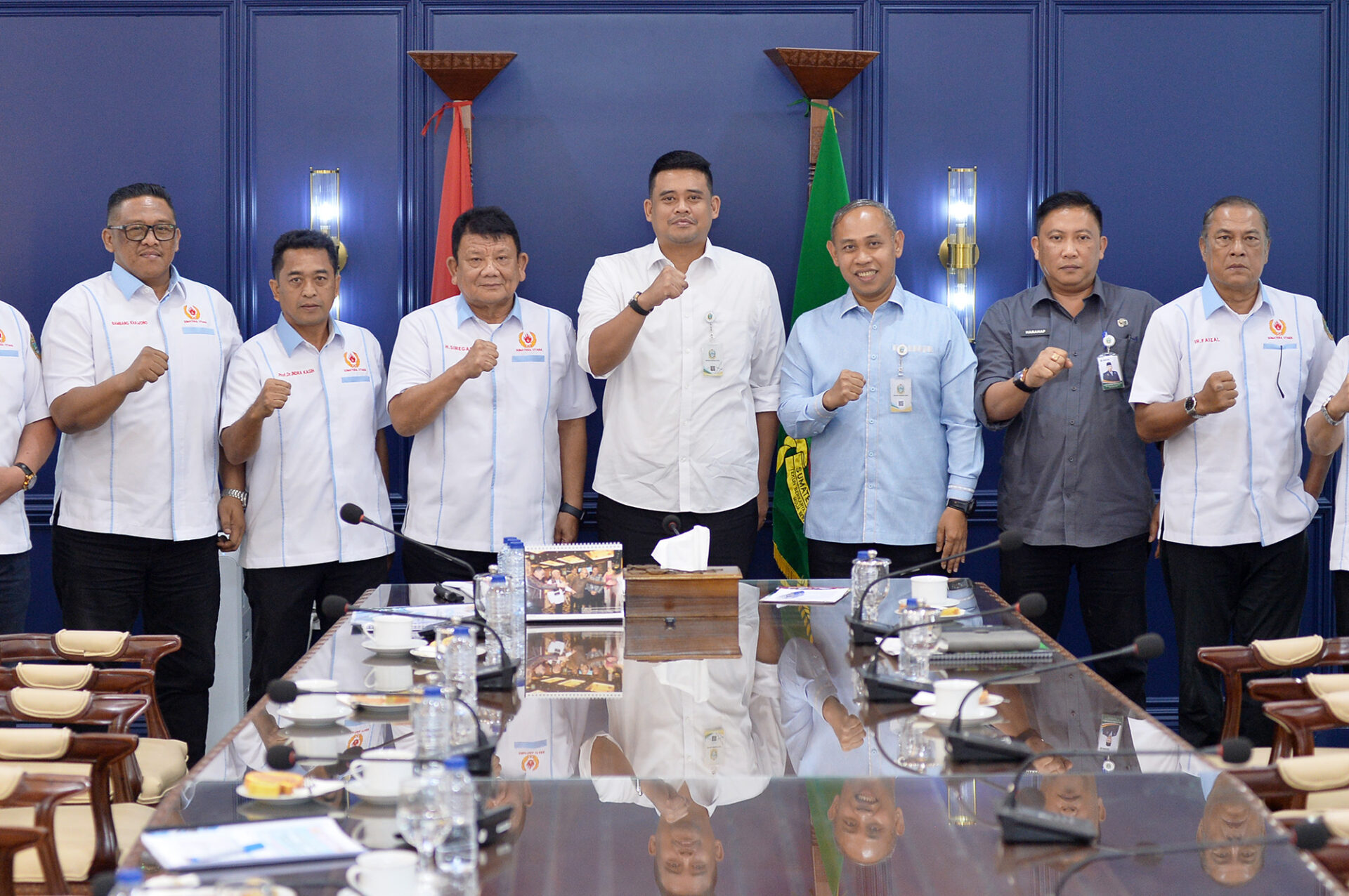 Gubsu Bobby Nasution terima audiensi Pengurus KONI Sumut di Ruang Rapat Lantai 10 Kantor Gubsu Jalan Diponegoro Medan. Selasa (07/04/2026). KONI memamparkan berbagai program kerja yang meliputi pembinaan atlet serta persiapan menjelang Porprovsu 2026 dan PON XXII 2028 mendatang. (Foto. Asarpua.com/diksu)