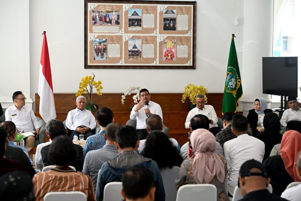 “Kita tetapkan UMP Sumut tahun 2026 sebesar Rp3.228.971. Kenaikan 7,9% ini sudah sesuai dengan perhitungan yang dilakukan,” kata Bobby Nasution saat temu pers di Lobby Dekranasda, Kantor Gubsu, Jalan Diponegoro 30 Medan, Jumat (19/12/2025).