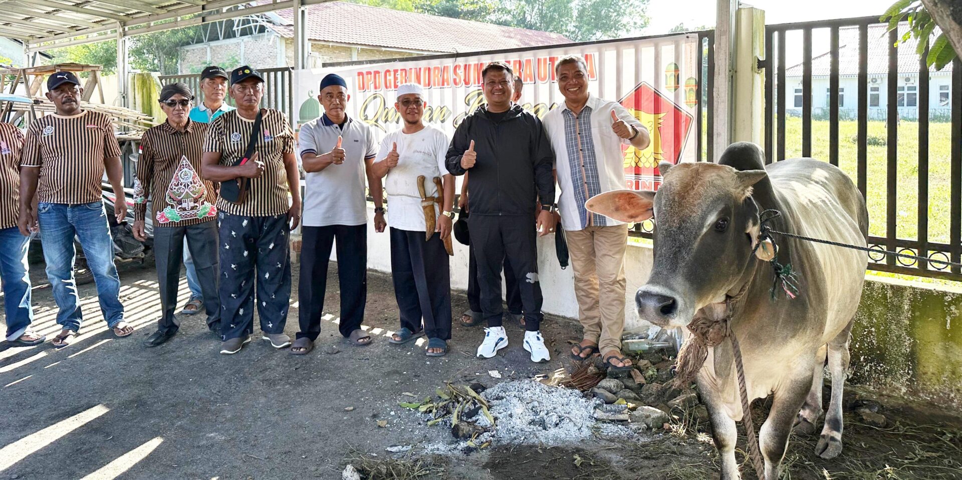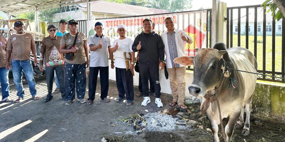 Paguyuban Keluarga Besar (PKB) Putra Jawa Kelahiran Sumatera (Pujakesuma) Kabupaten Asahan merayakan Idul Adha 1446 H dengan memotong hewan kurban lembu di halaman Padepokan/Joglo PKB Pujakesuma Asahan, Sabtu (07/06/2025). (Foto: Dok/Dikas)