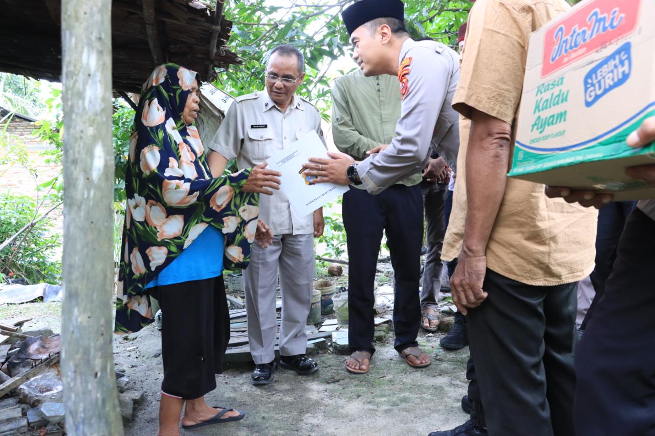 Didampingi para pejabat utama Polres Labuhanbatu, Kapolres menyambangi kediaman Ibu Rosaini. Kapolres memberikan bantuan sosial berupa sembako dan uang tunai. Bantuan tersebut diharapkan dapat meringankan beban kebutuhan sehari-hari serta memberikan semangat bagi Rosaini.