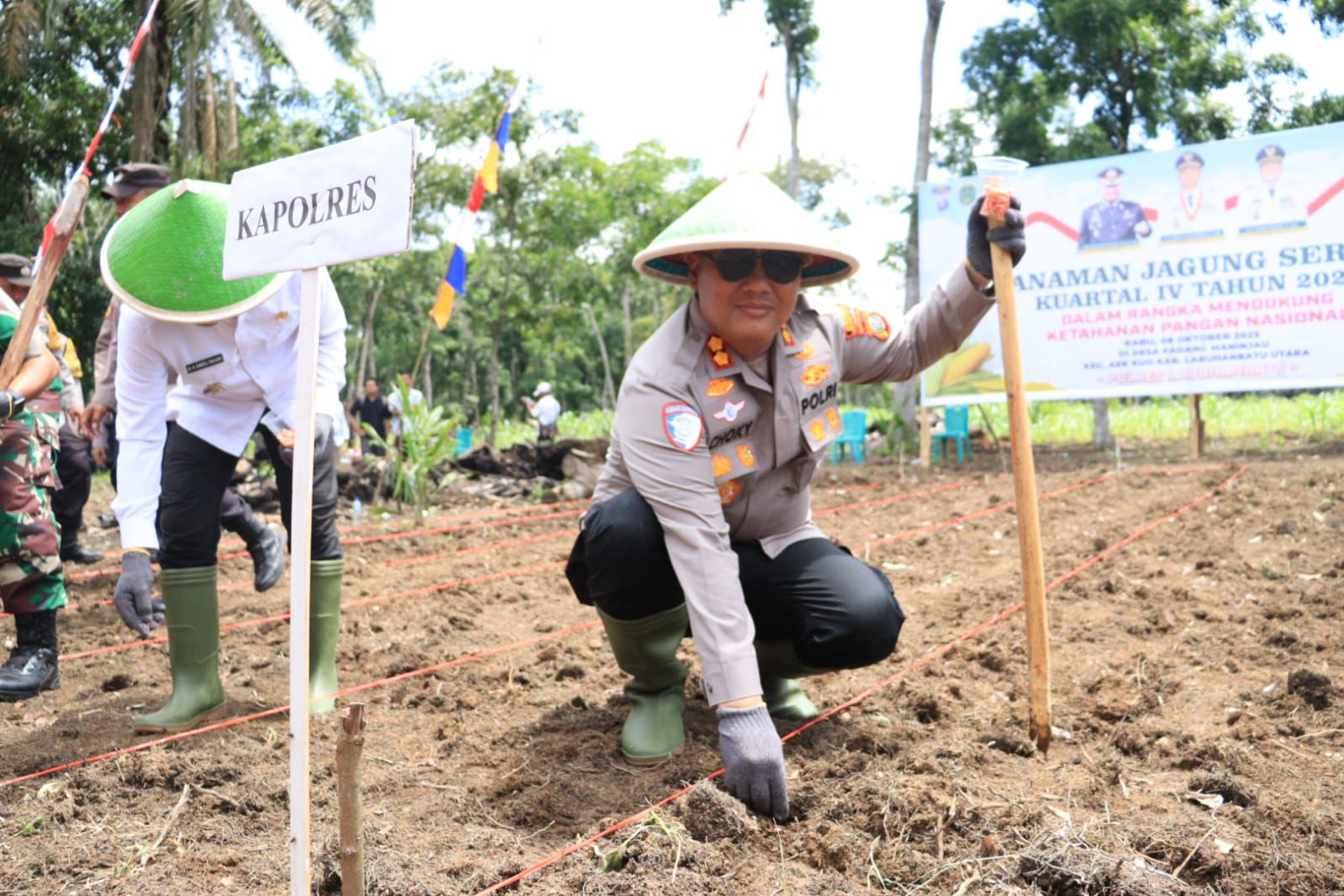 ASARPUA.com – Labuhanbatu – Kapolres Labuhanbatu AKBP Choky Sentosa Meliala bertanam jagung di Dusun VII, Desa Padangmaninjau, Kecamatan Aekkuo, Kabupaten Labuhanbatu Utara (Labura), Rabu (08/10/2026).