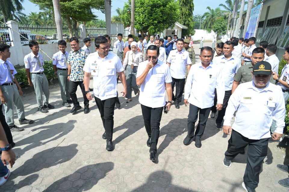 Gubsu Bobby Nasution bersama Kepala Komunikasi Kepresidenan Republik Indonesia Hasan Nasbi serta Bupati Serdangbedagai Dharma Wijaya dan sejumlah Forkopimda, meninjau operasional Dapur SPPG Cempedak Lobang, serta memberikan bantuan kepada relawan SPPG secara simbolis, sekaligus sosialisasi Program Presiden RI Bapak Prabowo Subianto Realisasi dan Bukti Nyata Makan Bergizi Gratis di Seirampah, Kabupaten Serdangbedagai, Rabu (30/07/2025). (Foto. Asarpua.com/diksu)