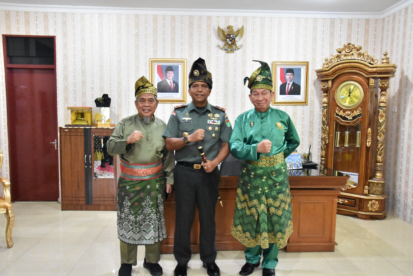 Komandan Korem 031/Wira Bima, Brigjen TNI Agustatius Sitepu, melaksanakan kunjungan silaturahmi ke Lembaga Adat Melayu Riau (LAMR) sebagai bentuk komitmen memperkuat sinergi antara TNI dan lembaga adat dalam menjaga serta melestarikan nilai-nilai budaya Melayu Riau. (Foto. Asarpua.com/ humas)