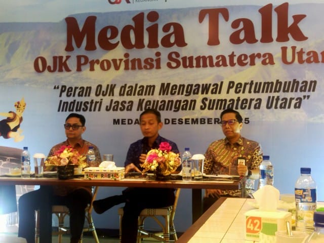 Demikian disampaikan Kepala Kantor OJK Provsu Khoirul Muttaqien didampingi Wan Nuzul Fachri Kepala Direktorat Pengawasan Lembaga Jasa Keuangan) dan Yusri selaku Kepala Direktorat Pengawasan Perilaku Pelaku Usaha Jasa Keuangan, Edukasi, Pelindungan Konsumen, dan Layanan Manajemen Strategis pada pertemuan bersama media di Medan Kamis (04/12/2025).