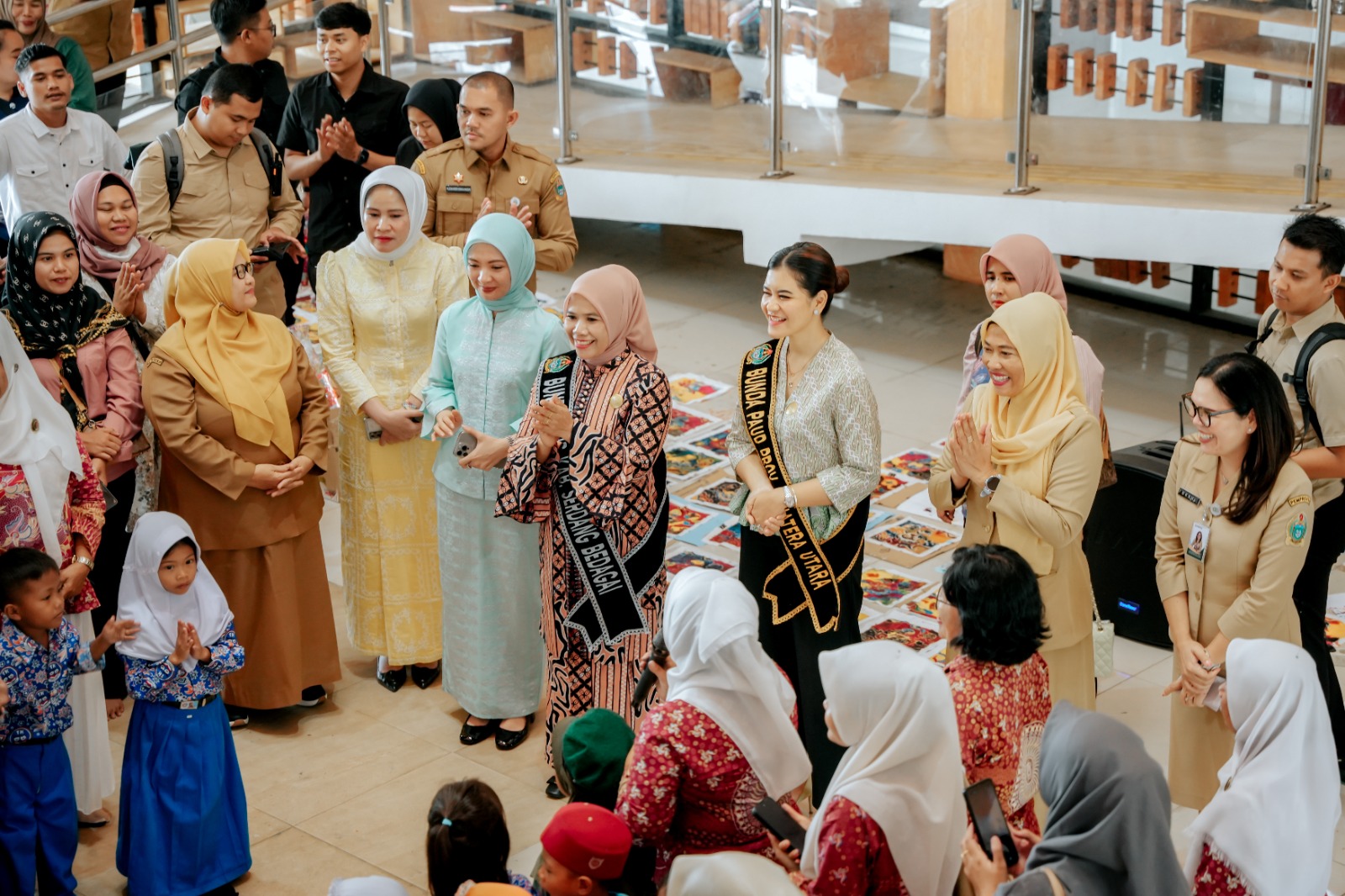 Bunda PAUD Sumut Kahiyang Ayu menghadiri lomba membatik anak PAUD dalam rangka turut memeriahkan Hari Batik Nasional di Aula Perpustakaan Kabupaten Serdangbedagai, Selasa (14/10/2025). (Foto. Asarpua.com/diksu)