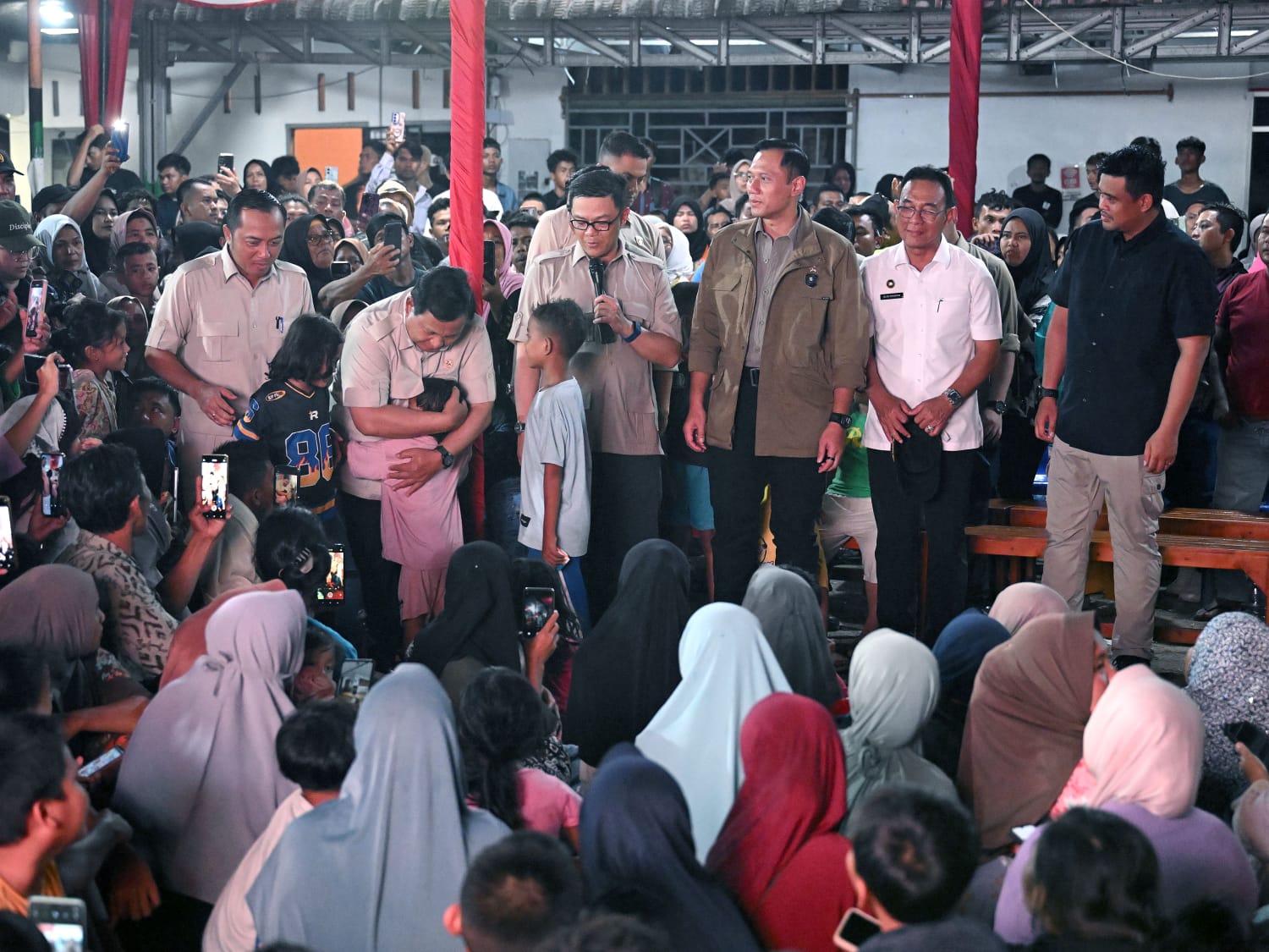 “Upaya memitigasi, merehabilitasi dengan membangun hunian bagi para korban terdampak bencana masih terus berlangsung. Jadi kali ini kita ingin menghibur mereka agar sedihnya sedikit berkurang. Apalagi ada Pak Presiden RI langsung datang di sini,” ujar Bobby Nasution, yang hadir bersama Bupati Tapsel Gus Irawan Pasaribu, sambil menyapa warga, berfoto bersama anak-anak, dan membagikan hadiah kecil yang disambut tawa polos di tengah dinginnya malam.