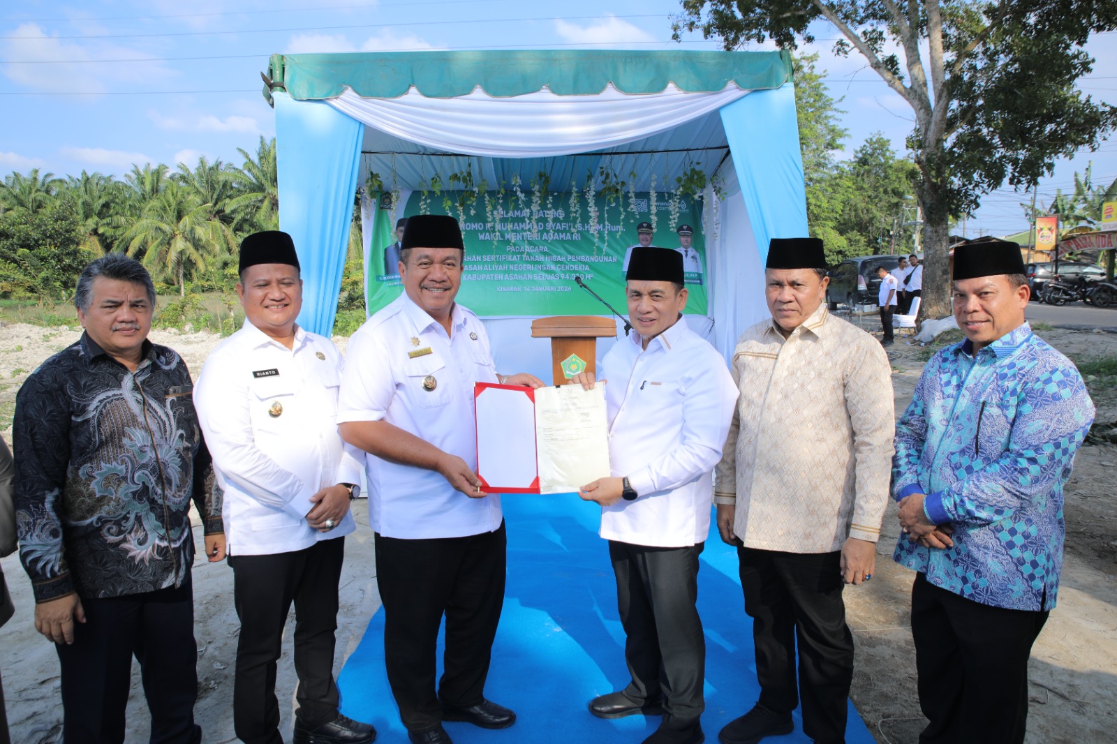 ASARPUA.com – Asahan – Pemerintah Kabupaten (Pemkab) Asahan secara resmi menyerahkan sertifikat tanah hibah seluas 94.030 meter persegi untuk pembangunan Madrasah Aliyah Negeri (MAN) Insan Cendekia Kabupaten Asahan.