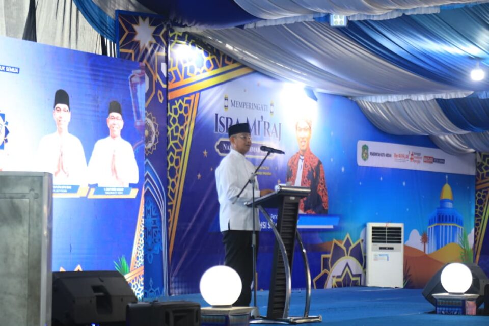 Dihadapan Wakil Ketua DPRD Medan Rajudin Sagala, Unsur Forkopimda, segenap Anggota DPRD Medan, Saiful Bahri, Muslim dan Tia Ayu Anggraini serta Kakankemenag Kota Medan Impun Siregar dan Ketua MUI Kota Medan Hasan Matsum, Sekda Wiriya Alrahman mengatakan peringatan Isra’ Mi’raj ini menjadi wujud komitmen Pemko Medan dalam memberikan pelayanan yang menyeluruh, tidak hanya pada aspek pembangunan fisik, tetapi juga pembangunan manusia yang berlandaskan nilai agama dan prinsip kehidupan.