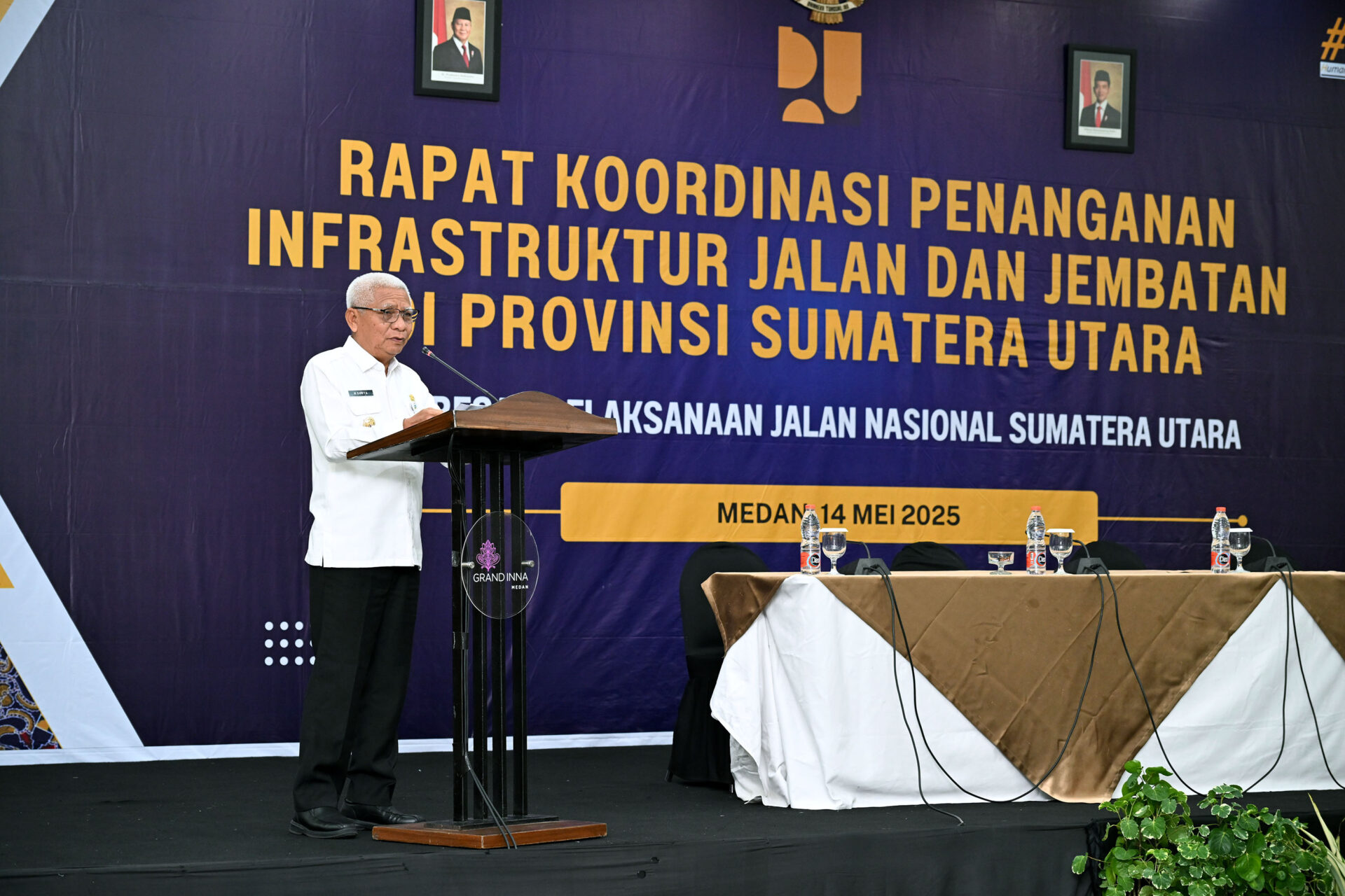 Hal tersebut disampaikan Wakil Gubernur Sumatera Utara (Wagubsu) Surya pada saat membuka Rapat Koordinasi Penanganan Jalan dan Jembatan Sumut di Hotel Grand Inna, Jalan Balai Kota, Medan, Rabu (14/05/2025).