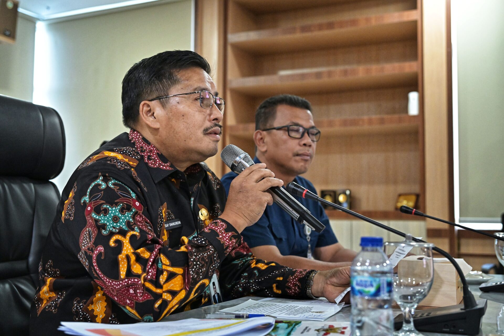 Togap Simangunsong, saat membuka Rapat Kesiapsiagaan Menghadapi Musim Penghujan Sumut serta Tindak Lanjut Hasil Rapat Koordinasi Banjir Bandang Akibat Bencana Hidrometeorologi Basah di Kecamatan Bahorok, Kabupaten Langkat. (Foto. Asarpua.com/Diksu)