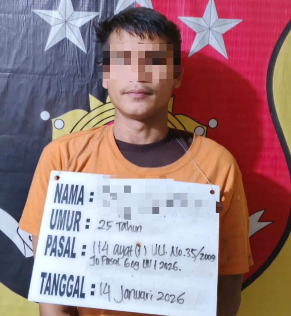 “Kemarin sekira pukul 16.00 WIB, tim mendatangi lokasi di samping belakang rumah warga di Dusun I Desa Seinahodaris. Di tempat tersebut, tim mendapati seorang laki-laki berinisial BH sedang duduk sambil menggenggam bungkusan di tangan kirinya,” kata kata Kapolsek AKP Amlan kepada sejumlah wartawan, Kamis (22/01/2026).