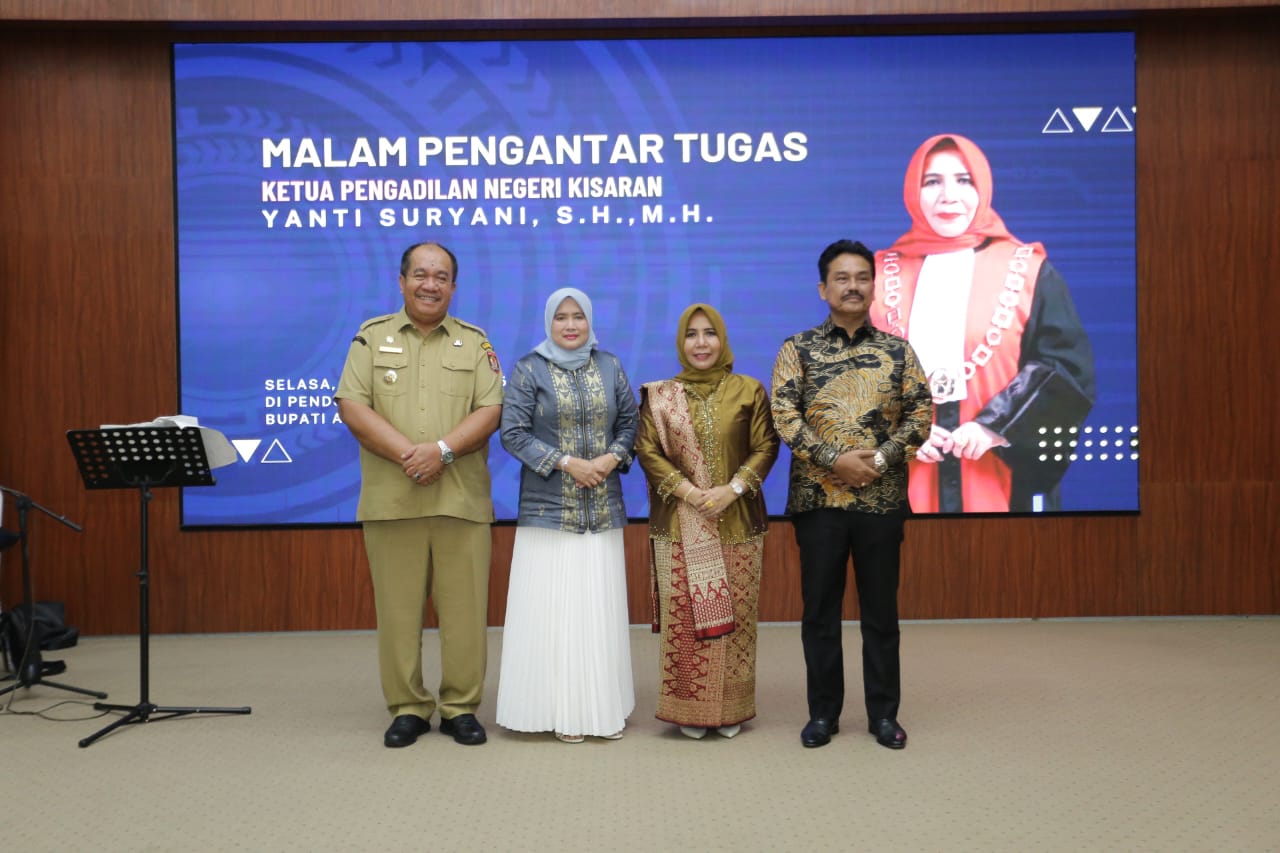ASARPUA.com – Asahan – Pemkab Asahan dan seluruh unsur Forkopimda (Forum Koordinasi Pimpinan Daerah) menggelar acara pengantar tugas Ketua Pengadilan Negeri (PN) Kisaran, Ibu Yanti Suryani Selasa (25/11/2025) malam di Pendopo Rumah Dinas Bupati Asahan. Acara tersebut diselenggarakan sebagai bentuk apresiasi atas dedikasi dan kontribusi Ibu Yanti Suryani selama masa jabatannya. Ibu Yanti Suryani menyampaikan rasa terima kasih dan kesan mendalam atas dukungan, koordinasi, dan kerja sama yang terjalin baik dari seluruh jajaran Pemkab Asahan dan unsur Forkopimda selama ini.