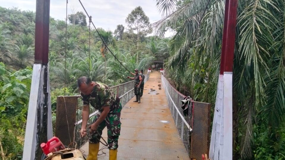 Kodim 0209/LB telah menuntaskan perbaikan Jembatan Gantung Perintis di Dusun Patihe Jae, Desa Sampean, Kecamatan Sei Kanan, Kabupaten Labuhanbatu Selatan, Senin (23/02/2026). (Foto. Asarpua.com/ humas)