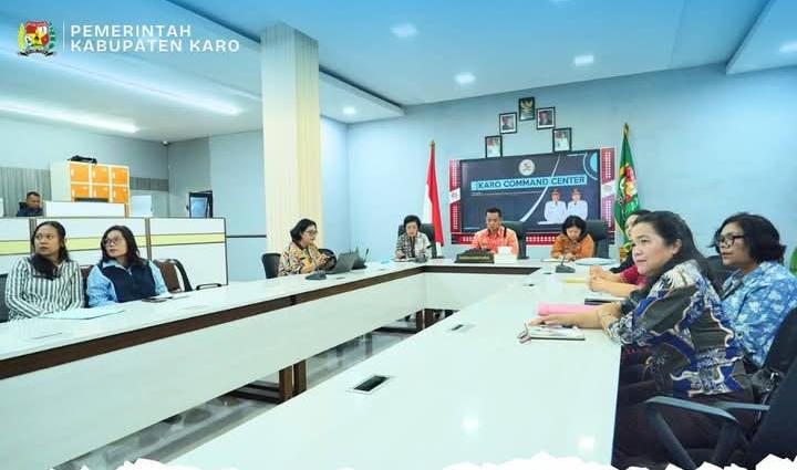 ASARPUA.com – Karo – Bupati Karo Antonius Ginting yang diwakilkan oleh Sekdakab Karo Gelora Kurnia Putra Ginting yang didampingi Kepala Dinas DP3AP2KB Data Martina, mengikuti kegiatan Pendampingan Evaluasi Kabupaten/Kota Layak Anak (KLA) Provinsi Sumatera Utara yang dilaksanakan secara daring melalui Zoom Meeting di Karo Command Center (KCC), Jumat (10/04/2026).