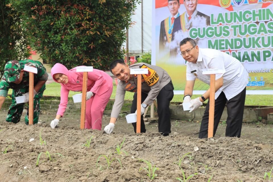 ASARPUA.com – Asahan – Bertempat di Halaman Polsek Kota Kisaran Jalan WR Supratman Kelurahan Lestari Kecamatan Kisaran Timur, Rabu (20/11/2024) Kapolres Asahan AKBP Afdhal Junaidi SIK MM MH bersama Pjs Bupati Asahan Drs Basarin Yunus Tanjung diwakili Kadis Ketahanan Pangan (Ketapang) Ali Mughofar SSos MAP melaksanakan Launching gugus tugas Polri melalui virtual zoom dalam rangka mendukung program ketahanan pangan dilanjutkan dengan penanaman bibit jagung dan penyebaran benih ikan.