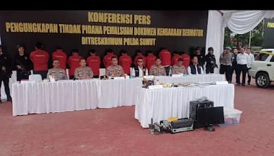 “Kita berhasil mengungkap pemalsuan surat kendaraan bermotor, dan ini bukan 1 provinsi, tapi di berbagai provinsi,” terang Kapoldasu Irjen Whisnu Hermawan Februanto didampingi Dirreskrimum Kombes Sumaryono dan Kasubdit Jatanras Kompol Jama Kita Purba, Senin (05/05/2025).