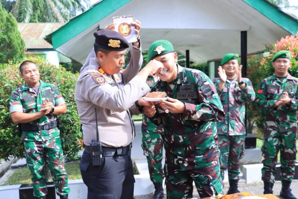 Pemberian kue ulang tahun tersebut disambut hangat sejumlah personel TNI yang bertugas. Kasat Samapta juga menyulang kue ulang tahun kepada para anggota TNI di Kompi itu.