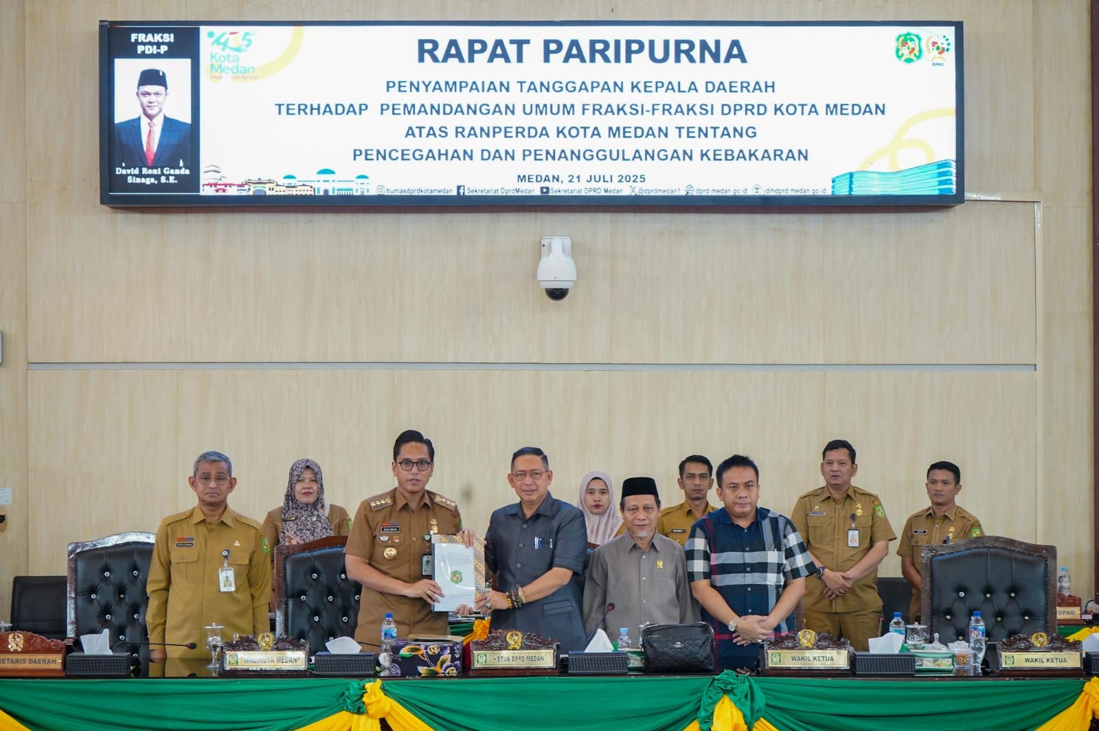 ASARPUA.com – Medan – Walikota Medan, Rico Waas, menyampaikan tanggapan atas pemandangan umum fraksi-fraksi DPRD tentang Rancangan Peraturan Daerah (Ranperda) tentang Pencegahan dan Penanggulangan Kebakaran dalam Sidang Paripurna DPRD, Senin (21/07/2025).