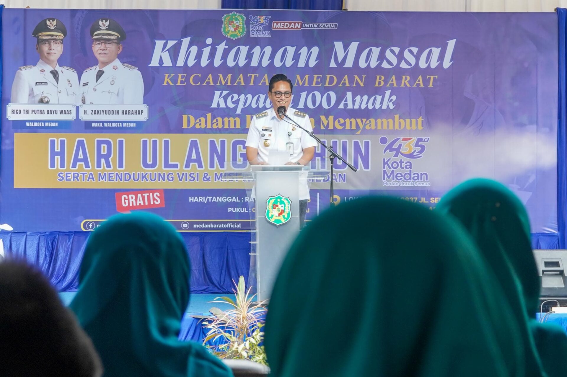 Tercatat, sebanyak 100 anak mengikuti khitanan massal yang dilaksanakan Kecamatan Medan Barat dalam rangka menyambut Hari Ulang Tahun (HUT) ke-435 Kota Medan sekaligus mendukung visi misi Wali Kota Medan ini.