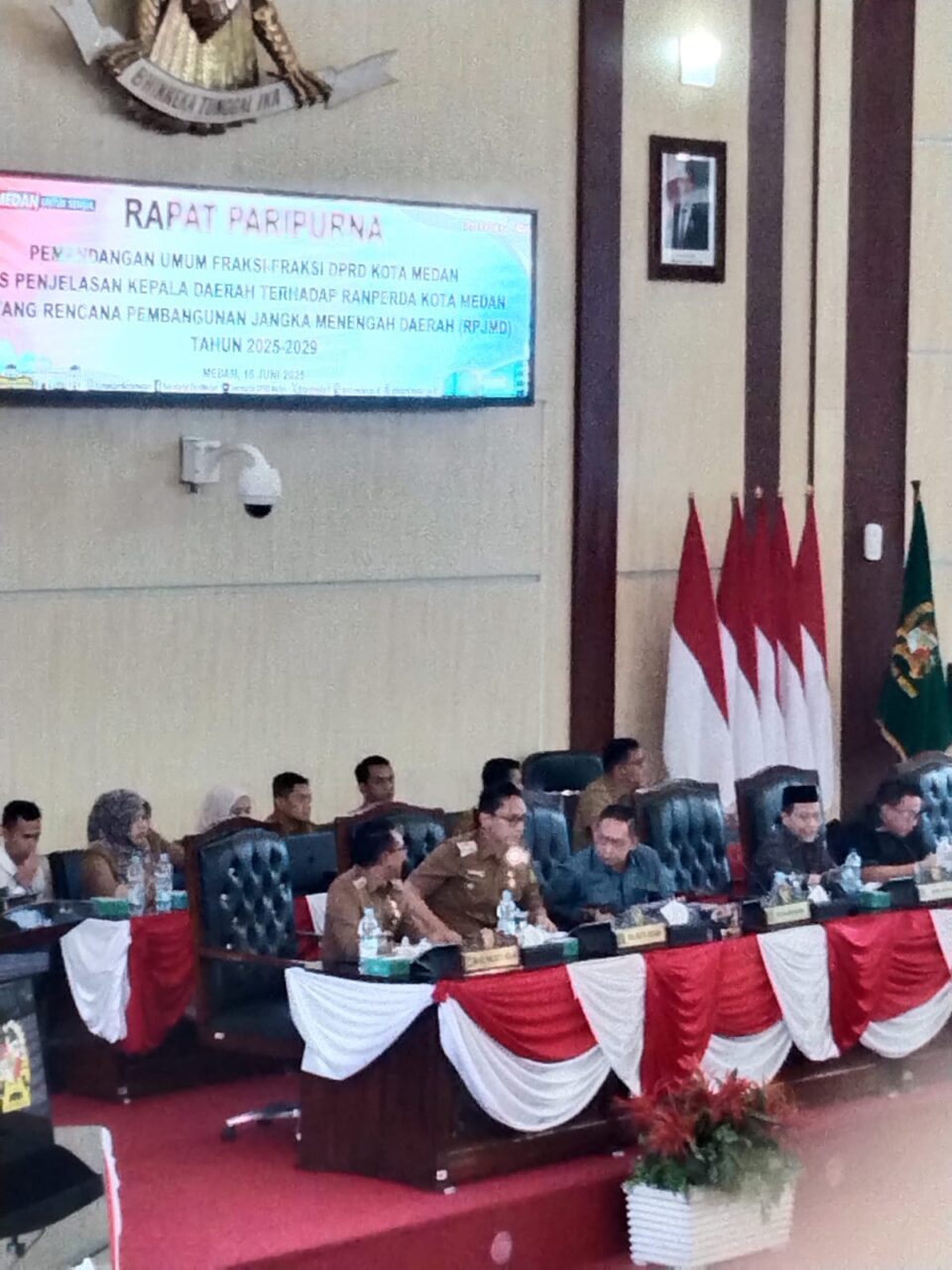 Rapat dipimpin Ketua DPRD Medan Drs Wong Cun Sen didampingi Wakil Ketua Zulkarnaen, Rajudin Sagala. Ikut dalam rapat anggota DPRD Medan dan persidangan difasilitasi Sekwan DPRD Medan M Ali Sipahutar bersama Kabag Persidangan Andres Willy Simanjuntak. Hadir juga Walikota Medan Rico Tri Putra Bayu Waas, Wakil Walikota Medan Zakiyuddin Harahap dan para OPD Pemko Medan. (Asarpua)