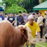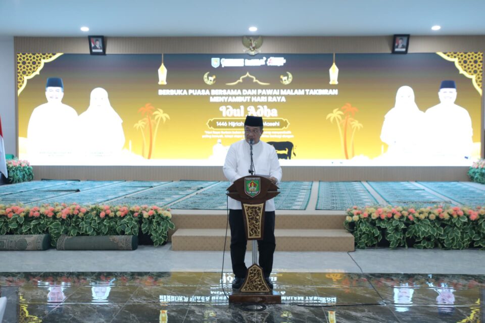 “Idul Adha mengajarkan kita untuk tidak hanya berqurban hewan, tetapi juga mengorbankan hati dan jiwa dalam ketaatan kepada Allah serta membantu sesama. Mari kita bersyukur atas nikmat yang telah diberikan dan memaksimalkan ibadah, termasuk kurban, sebagai wujud syukur dan mendekatkan diri kepada Allah”. ucap Bupati.