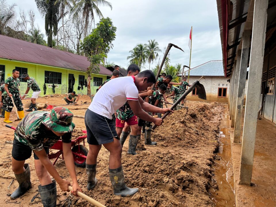 Pembersihan dilaksanakan secara gotong royong dengan melibatkan Babinsa Koramil 03/Pandan, personel Yon TP 905/TS, serta pihak sekolah yang dipimpin langsung oleh kepala sekolah. Sinergi tersebut menjadi wujud kepedulian bersama dalam mempercepat pemulihan sarana pendidikan pascabencana.