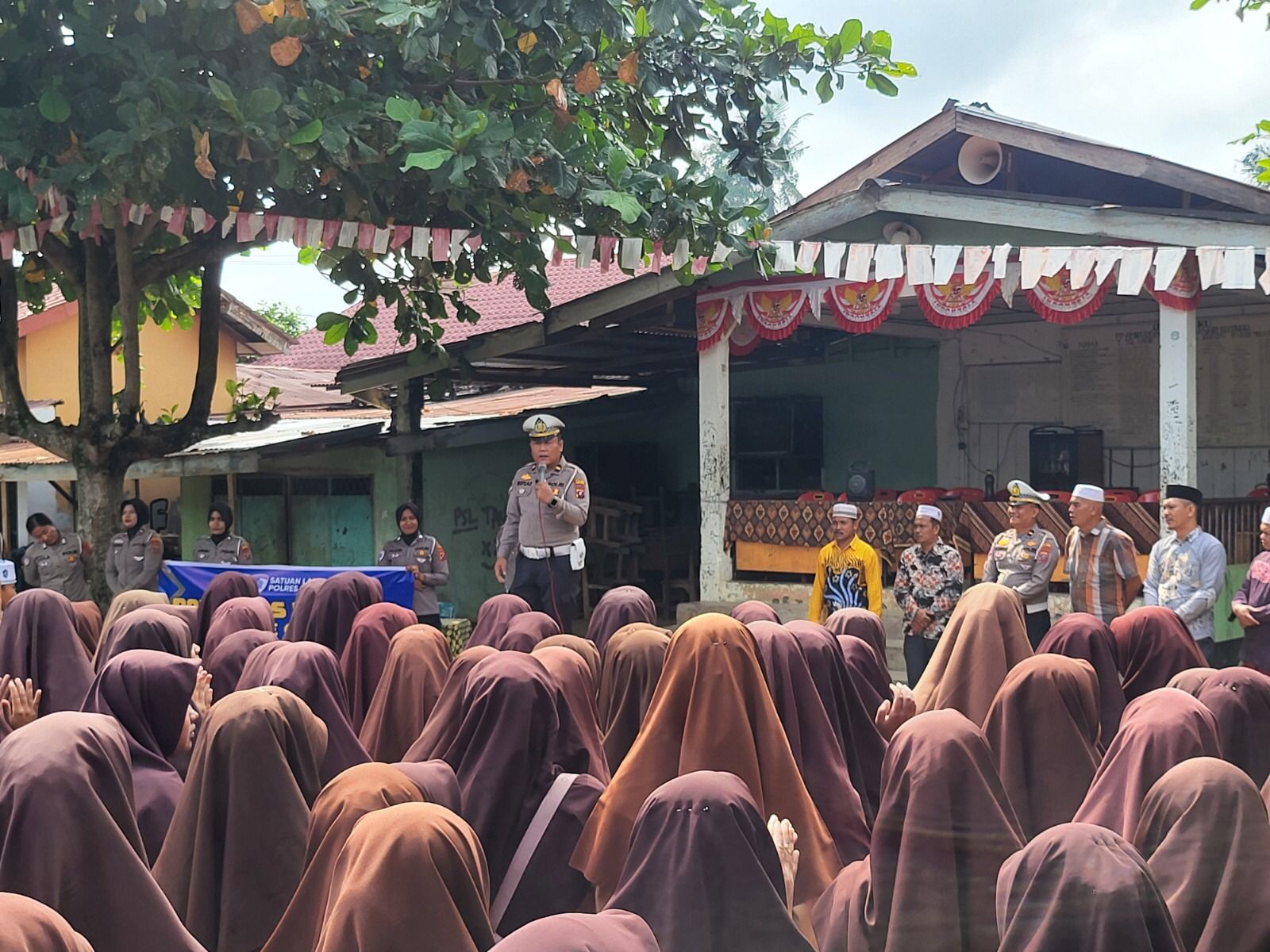 ASARPUA.com – Labuhanbatu – Dalam rangka menyambut dan memeriahkan hari ulang tahun Lalulintas Bhayangkara 2025, personel Satuan Lalulintas (Satlantas) Polres Labuhanbatu menyapa para santri Pondok Pesantren Amiruddiniyah, berlokasi di Jalan Purbasari, Desa Bandartinggi, Kecamatan Bilah Hulu, Kabupaten Labuhanbatu, Jumat (12/09/2025).