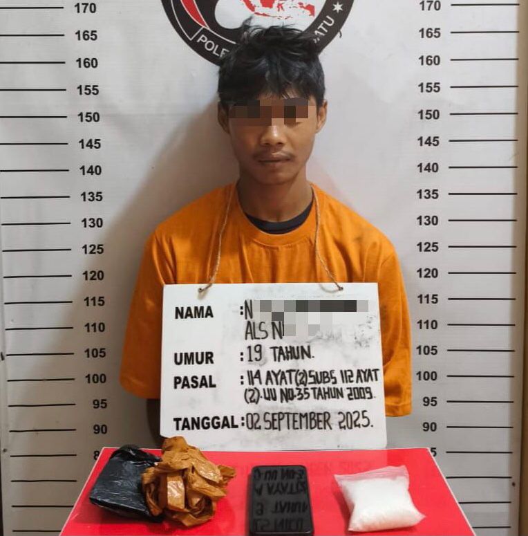 “Tim menangkap NA saat melintas di jalan umum Desa Seimerdeka. Petugas mengamankan barang bukti satu bungkus (plastik klip) sabu seberat 99,42 gram yang dibalut lakban hitam, handphone android warna hitam dan sepeda motor Kawasaki KLX warna hitam tanpa nomor polisi,” ungkap Kasatresnarkoba AKP Iwan Mashuri kepada sejumlah wartawan, Rabu (03/09/2025).