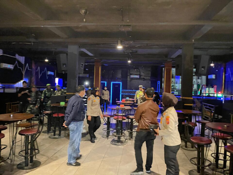 Polisi, TNI dan personel Satpol PP Pemkab Labuhanbatu mendatangi dan memeriksa kelab malam di Rantauprapat, saat melakukan Patroli Tiga Pilar menekan kriminalitas pada akhir pekan, Sabtu (22/11/2025). (Foto: Asarpua.com/Humas)
