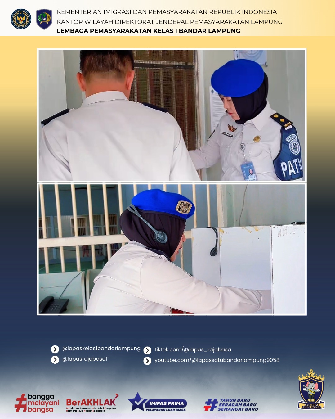 Melalui langkah preventif yang berkesinambungan ini, Lapas Kelas I Bandar Lampung berkomitmen penuh menciptakan lingkungan yang kondusif, aman, dan tertib. Sinergi antara ketegasan pengamanan dan kepedulian persuasif terhadap Warga Binaan ini diharapkan mampu menghadirkan suasana Ramadhan yang damai dan khusyuk di balik jeruji besi. (Asarpua)