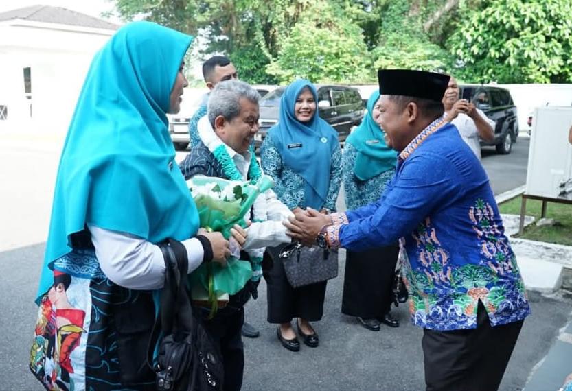 Wabup Labuhanbatu,Jamri, menyambut Tim Supervisi Desa dan Kelurahan dari TP-PKK Sumut yang turun melakukan penilaian dalam lomba tertib administrasi PKK, di Pendopo Rumah Dinas Bupati, Jalan WR Supratman, Rantauprapat, Kamis (23/04/2026). (Foto: Asarpua.com/Dikla)