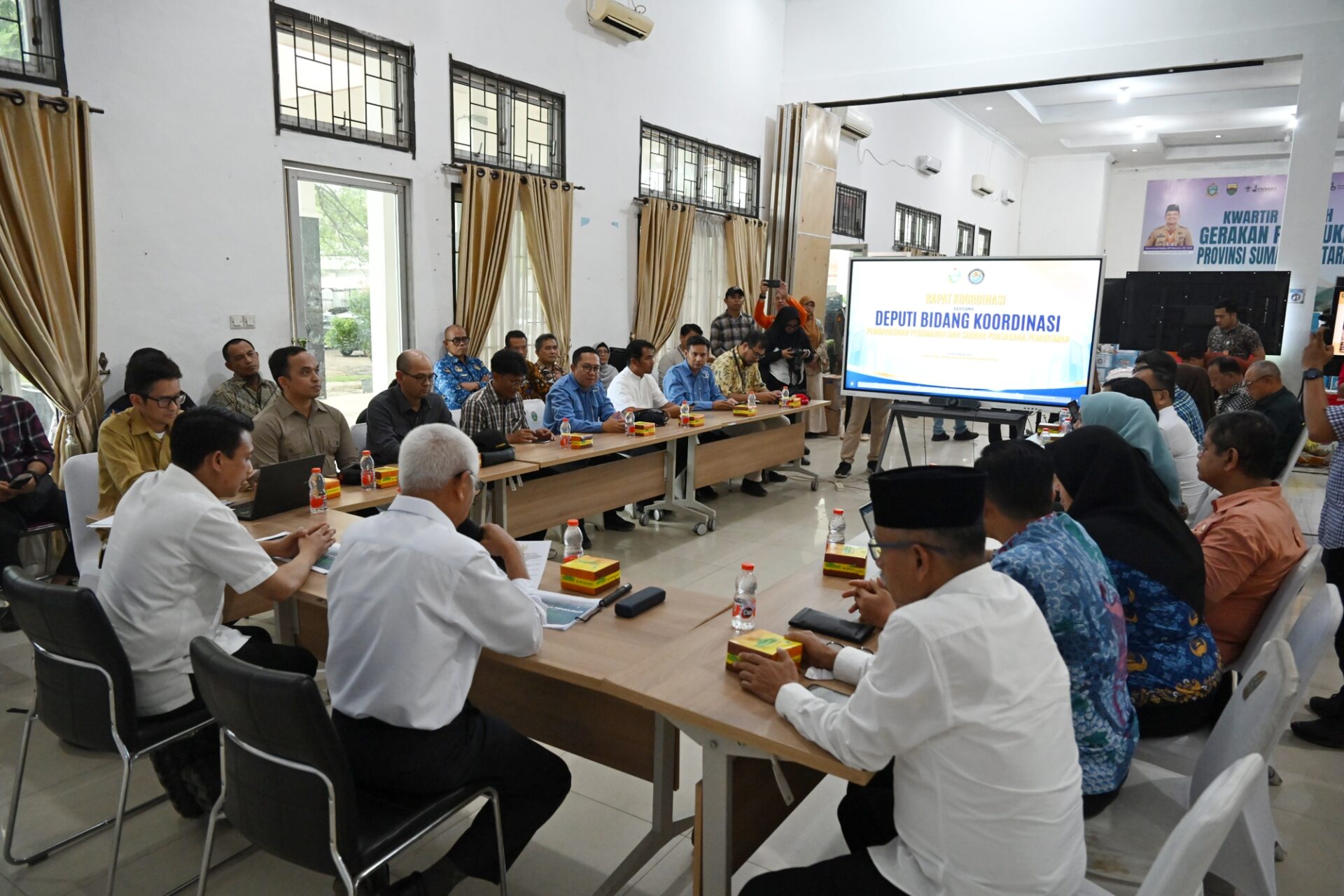 Hadir dalam rapat ini Deputi Bidang Koordinasi Pembangunan Perumahan dan Sarana Prasarana Permukiman Kemenkominfo Ronny Ariuly Hutahayan bersama jajaran. Dalam pertemuan tersebut, Wagubsu Sumut Surya mengungkapkan bahwa bencana ini memberikan dampak luas di 14 kabupaten dan 5 kota.